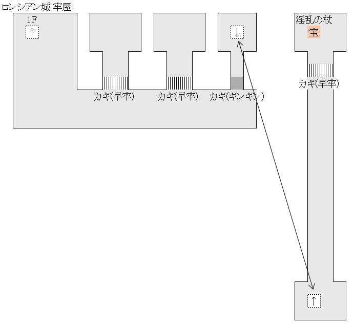 ロレシアン城1Fの鍵のかかった扉の先の宝箱からデカチンの汁を手に入れる