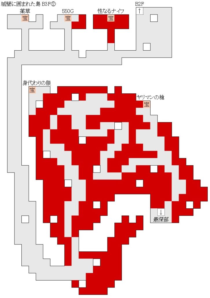 (途中最下層への階段と別の階段の先の宝箱にデカマラの剣がある)